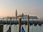 Das Foto gehört zur Serie "Venedig". Es zeigt die Morgenstimmung an der Lagune mit Gondeln und Anlegestelle. Es gelten die Nutzungsbedingungen der Mediothek und Pixiothek.