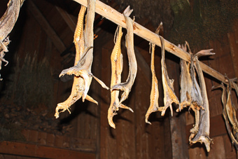 Das Foto gehört zur Serie "Lofoten". Es zeigt Stockfisch (Dorsch) auf einer Darre im Wikingermuseum. Es gelten die Nutzungsbedingungen der Mediothek und Pixiothek.