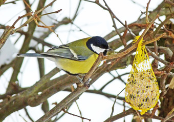 Das Foto gehört zur Serie "Vögel im Winter". Es zeigt eine Kohlmeise am Meisenknödel. Es gelten die Nutzungsbedingungen der Mediothek und Pixiothek.