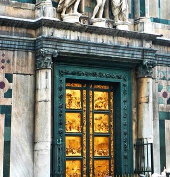 Das Foto gehört zur Serie "Paradiestür am Baptisterium von Florenz". Es zeigt das Ostportal mit der Paradiestür (auch Paradiespforte genannt). Es gelten die Nutzungsbedingungen der Mediothek und Pixiothek.