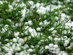 Das Foto gehört zur Serie "Wetter - Niederschlag". Es zeigt Hagelkörner auf einer Wiese. Das Bild ist unter CC0 lizenziert und kann somit frei verwendet werden.