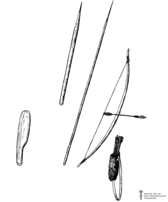 Das Bild gehört zur Serie "Zeichnungen Steinzeit - Museum für Ur- und Frühgeschichte Thüringens". Abgebildet sind typische Jagdwafen der Steinzeit. Es gelten die Nutzungsbedingungen der Mediothek und Pixiothek.