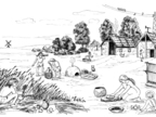 Das Bild gehört zur Serie "Zeichnungen Steinzeit - Museum für Ur- und Frühgeschichte Thüringens". Abgebildet ist ein Faustkeil als ein typisches Steinwerkzeug. Es gelten die Nutzungsbedingungen der Mediothek und Pixiothek.