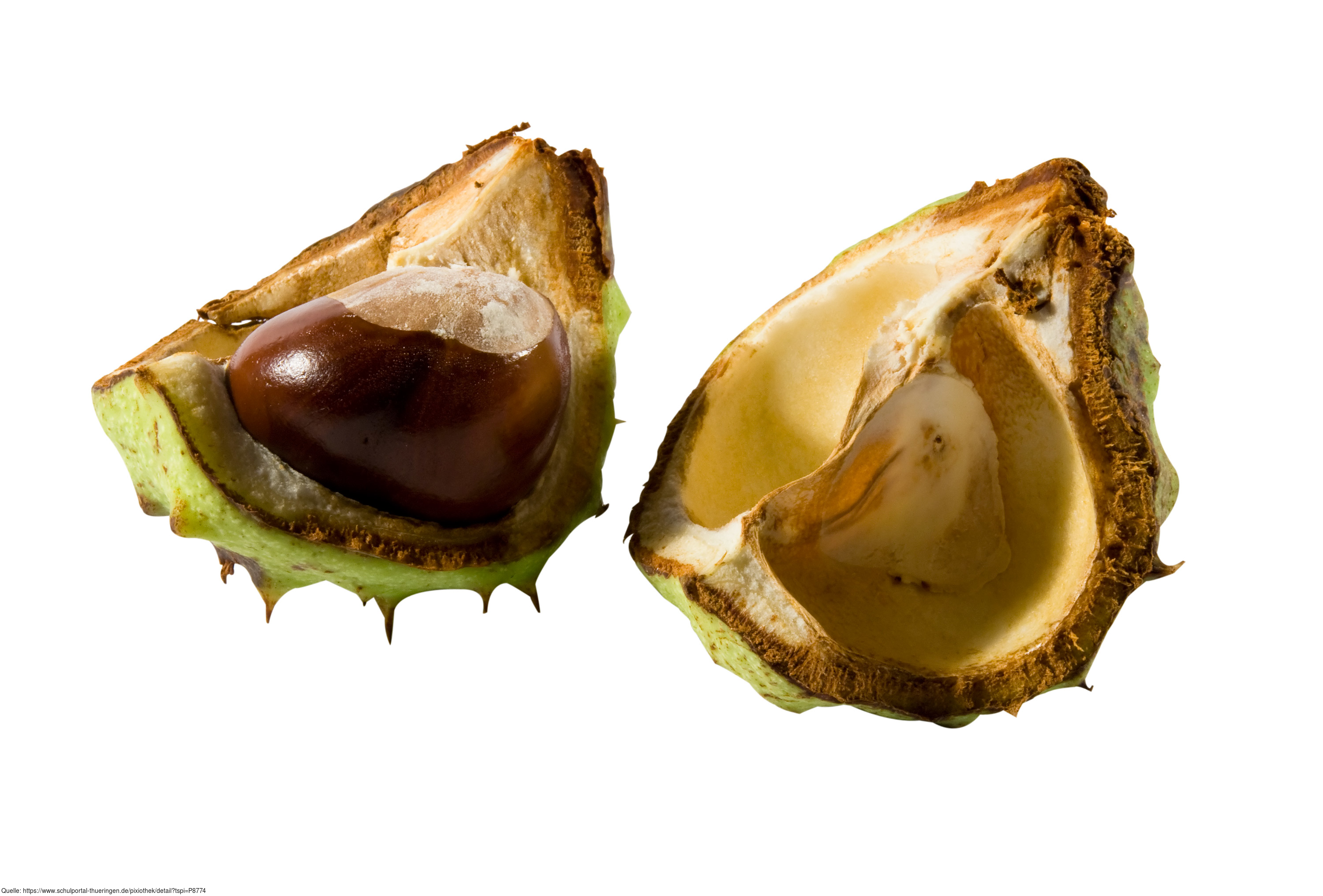 Das Foto gehört zur Serie "Laubbäume". Es zeigt einen geöffneten Fruchtbecher mit einer Frucht der Kastanie. Das Bild ist unter CC0 lizenziert und kann somit frei verwendet werden.