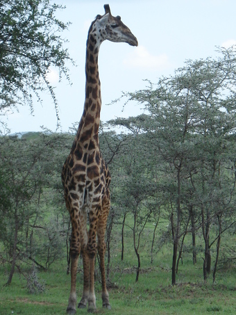 Das Bild wurde in Tansania aufgenommen. Es zeigt eine Giraffe an ihrem Futterplatz. Es gelten die Nutzungsbedingungen der Mediothek und Pixiothek.