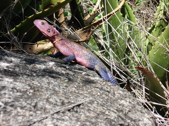 Tansania: Stahlblaue Felsenagame (Agama mwanzae)