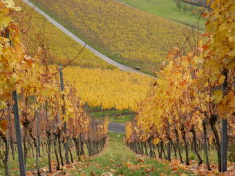 Das Bild gehört zur Serie "Herbstlandschaft". Es zeigt einen Weinberg im Herbst mit typischer Färbung. Das Bild ist unter CC0 lizenziert und kann somit frei verwendet werden.