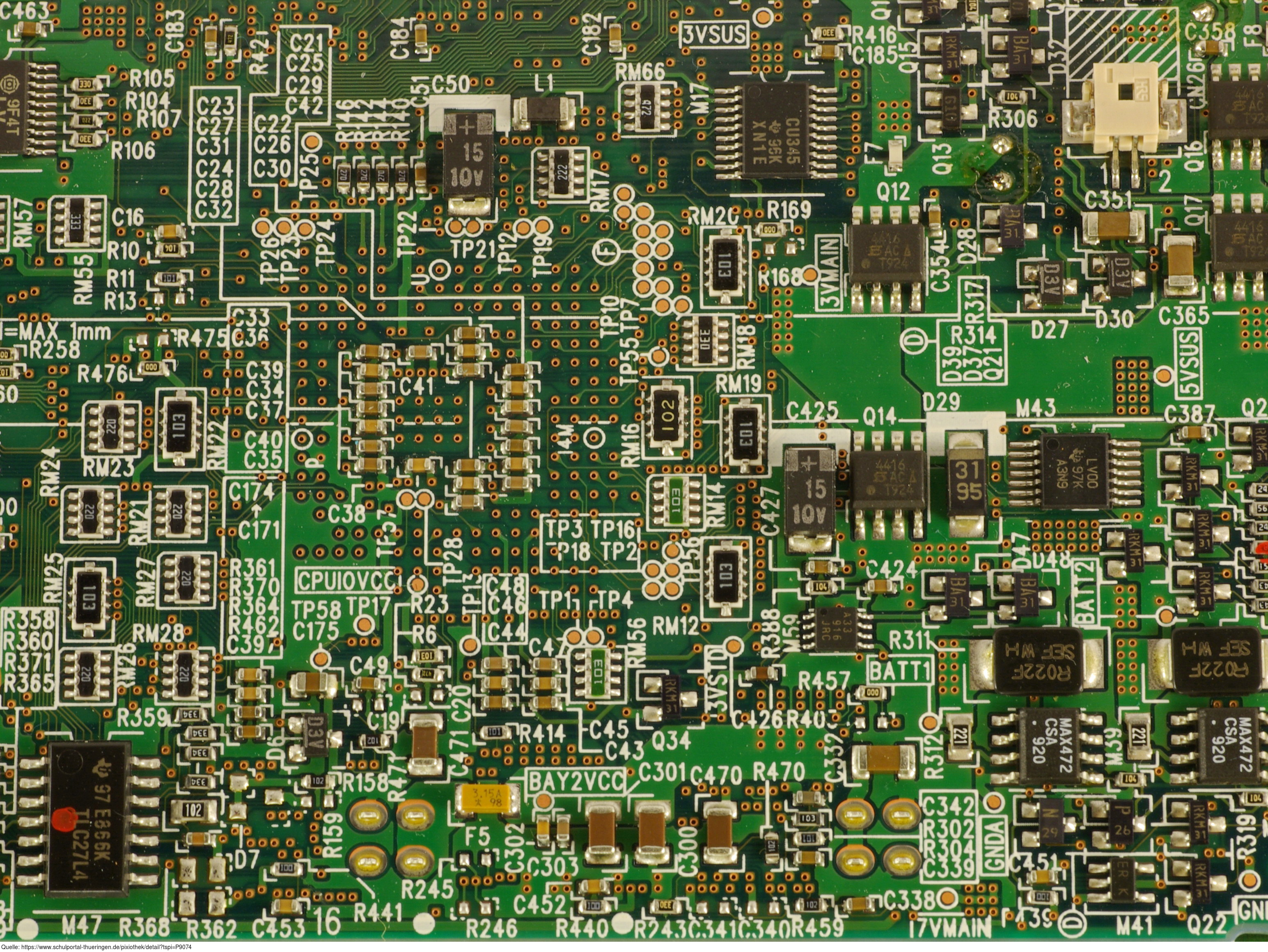 Das Foto gehört zur Serie "Elektronische Bauelemente". Es zeigt eine Leiterplatte, auch Platine oder gedruckte Schaltung genannt. Das Bild ist unter CC0 lizenziert und kann somit frei verwendet werden.