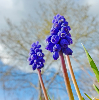 Das Foto gehört zur Serie "Frühblüher". Es zeigt Blüten von Traubenhyazinthen (Muscari). Das Bild ist unter CC0 lizenziert und kann somit frei verwendet werden.