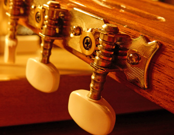 Das Foto gehört zur Serie "Musikinstrumente". Es zeigt eine Seite der Kopfplatte einer Gitarre mit der Stimmmechanik. Zur Stimmmechanik gehören im Allgemeinen folgende Bauteile: Grundplatte, Schneckengetriebe, Flügel und Stellachse. Das Bild ist unter CC0 lizenziert und kann somit frei verwendet werden.