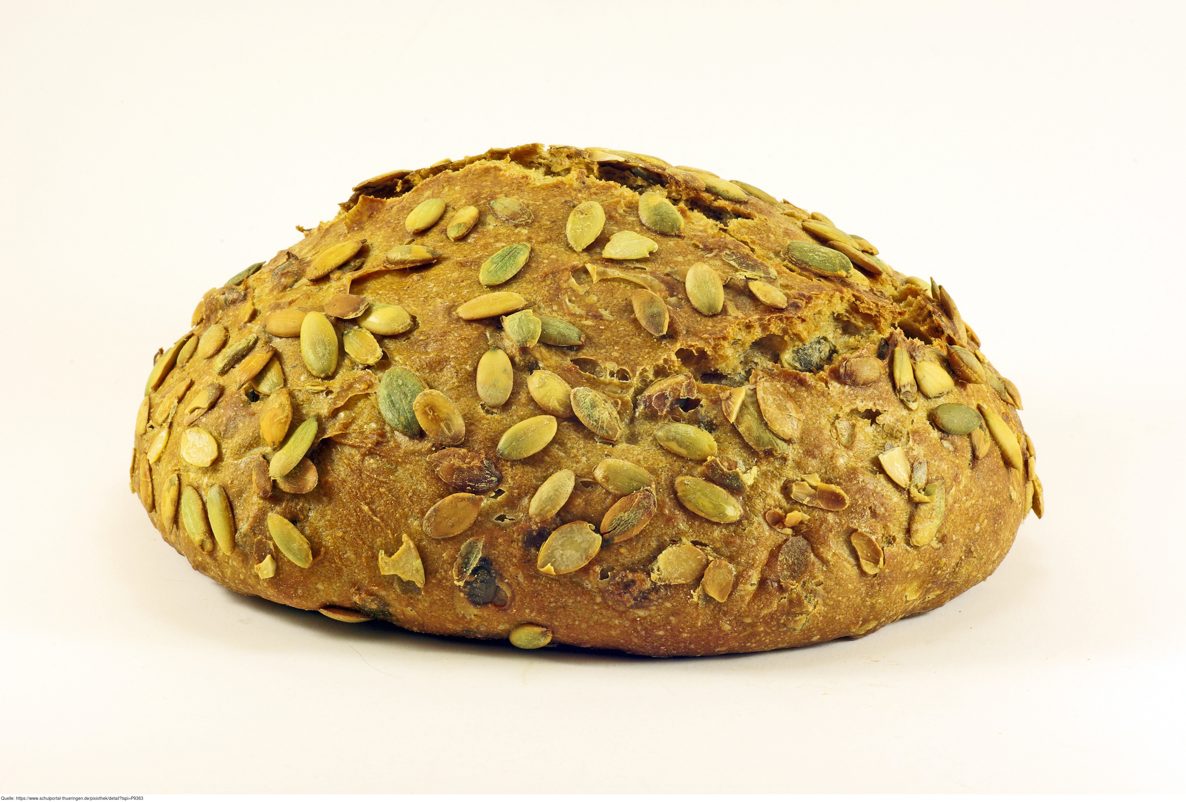Das Foto gehört zur Serie "Nahrungsmittel". Es zeigt ein Kürbiskern-Brötchen. Das Bild ist unter CC0 lizenziert und kann somit frei verwendet werden.