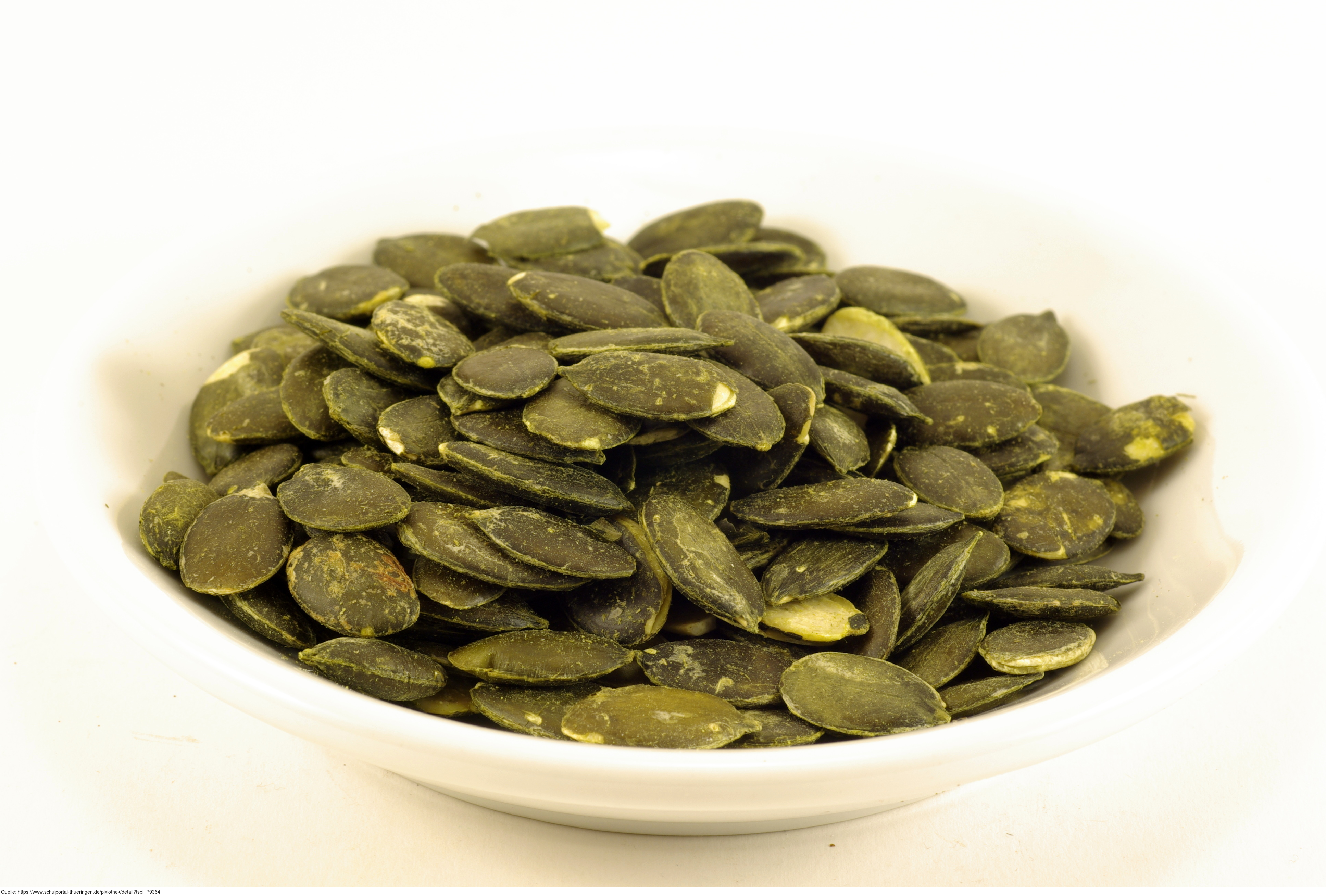 Das Foto gehört zur Serie "Nahrungsmittel". Es zeigt ein Kürbiskerne in einer Schlale. Das Bild ist unter CC0 lizenziert und kann somit frei verwendet werden.
