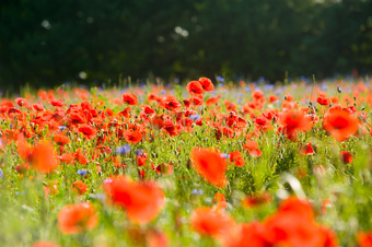Das Foto gehört zur Serie "Blüten von Blumen". Es zeigt ein Feld mit Blüten vom Mohn (Papaver). Das Bild ist unter CC0 lizenziert und kann somit frei verwendet werden.