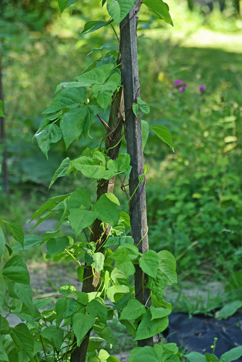 Das Bild gehört zur Serie "Nutzpflanzen". Es zeigt Pflanzen der Gartenbohne. Gartenbohnen, die unbegrenzt wachsen und sich dabei stark winden, bekommen vom Gärtner Stangen als Rankhilfen (Stangenbohnen). Das Bild ist unter CC0 lizenziert und kann somit frei verwendet werden.