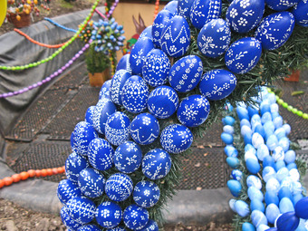 Das Foto gehört zur Serie "Ostern". Es zeigt die Osterkrone in Berga/Elster. 2015 bestand diese Dekoration aus über 15000 bemalten Eiern. Das Bild ist unter CC0 lizenziert und kann somit frei verwendet werden.