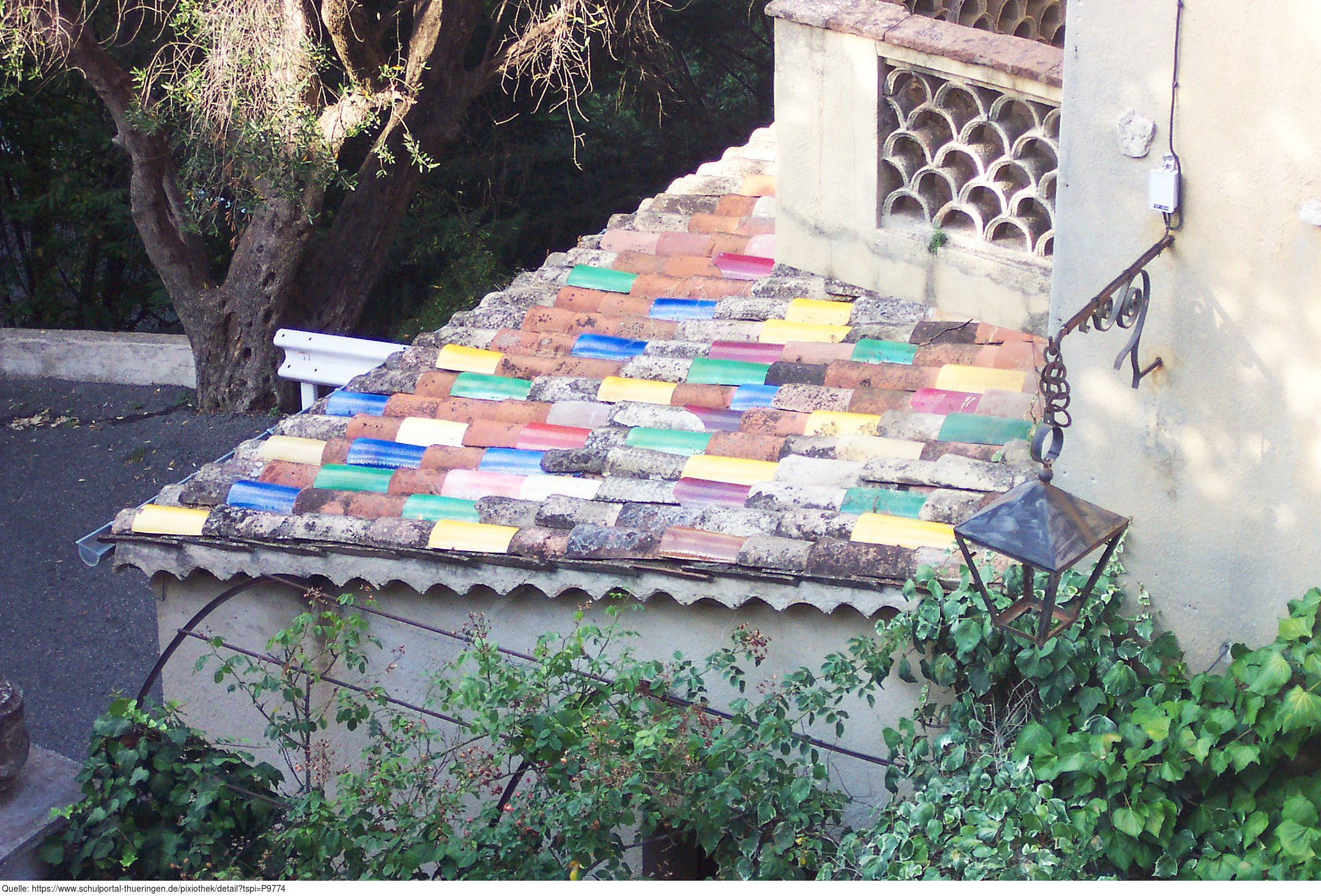 Das Bild gehört zur Serie "Provence und Côte d’Azur". Es zeigt bunte Dachziegel in einem Ort in Südfrankreich. Das Bild ist unter CC0 lizenziert und kann somit frei verwendet werden.