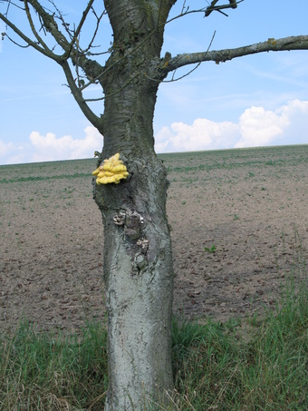 Das Foto gehört zur Serie "Baumpilze". Es zeigt einen Schwefelporling (Laetiporus sulphureus) an einem Kirschbaum. Er zählt zu den holzzersetzenden Baumpilzen. Das Bild ist unter CC0 lizenziert und kann somit frei verwendet werden.