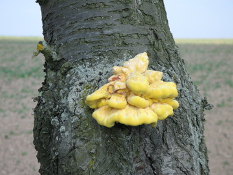 Das Foto gehört zur Serie "Baumpilze". Es zeigt einen Schwefelporling (Laetiporus sulphureus) an einem Kirschbaum. Er zählt zu den holzzersetzenden Baumpilzen. Das Bild ist unter CC0 lizenziert und kann somit frei verwendet werden.